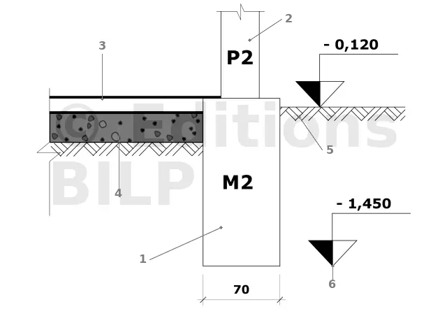 NOTE : Les profondeurs des fondations apparaissent sur les coupes, sur les dessins de détails ou sur les coupes de principes. Les cotes de niveau sont représentées par des