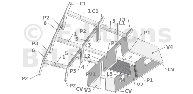 - Les poteaux peuvent être identifiés par la lettre majuscule P-n- suivie d’un numéro repère, exemple : P-1-, P-2-, P-3-.