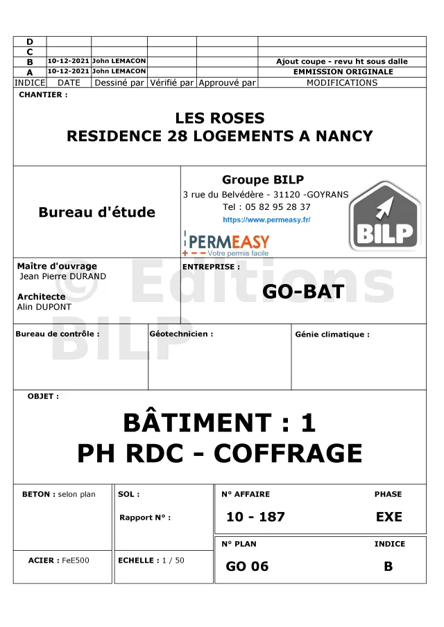 Le cartouche est la page de garde ou la page de couverture qui contient toutes les informations nécessaires à l’exécutant, telles que :