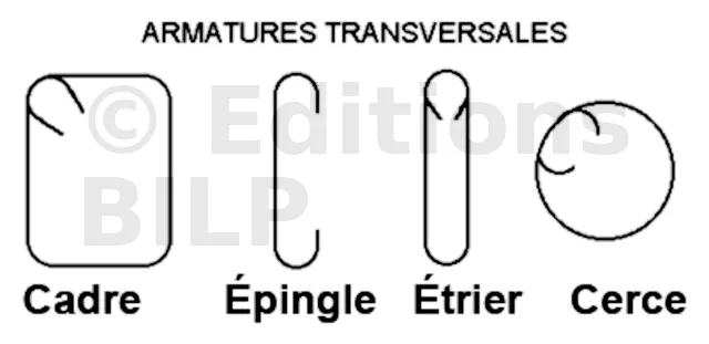 Les armatures transversales sont représentées avec précision en utilisant un trait fort pour illustrer leur forme exacte. Il existe différents types d’armatures transversales adaptées à chaque situation, telles que les chaînages triangulaires ou les linteaux avec feuillure. Chacun de ces types d’armatures est également représenté avec précision en fonction de sa forme spécifique.