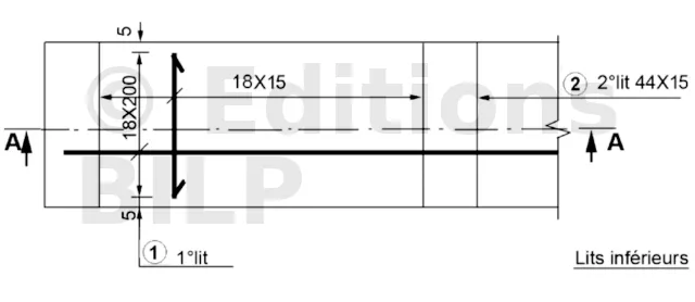Les armatures des dalles et des planchers en dalle pleine sont représentées à l’aide d’un plan d’ensemble ainsi qu’une coupe verticale. Deux types de représentation sont possibles :