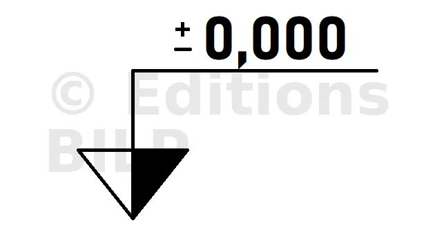 Les cotes de niveau sont accompagnées d’un signe en fonction de leur position par rapport à l’origine :- au dessus du niveau ± 0,000, signe positif (+)