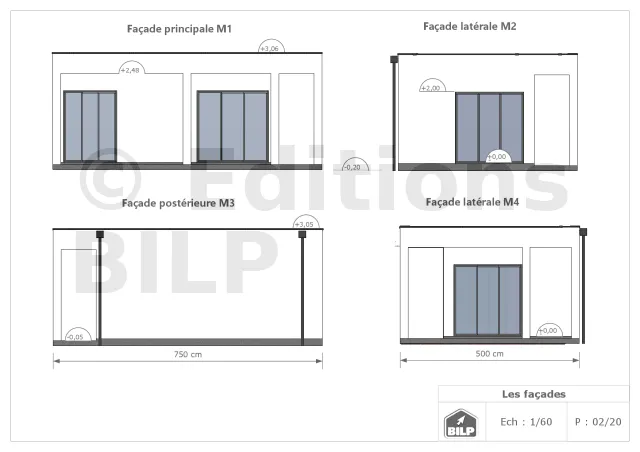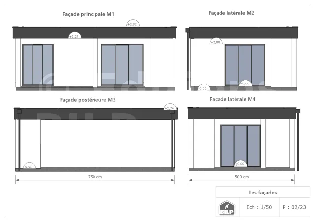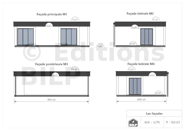 De couleur blanc avec les couvertines d’acrotère et les menuiseries en gris anthracite