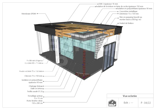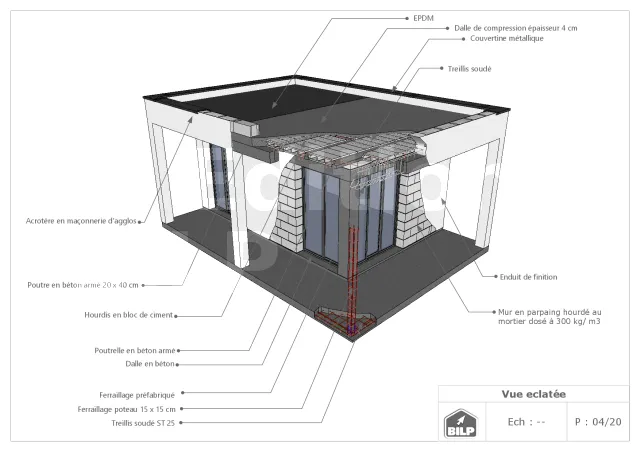 Pour la toiture, vous aurez le choix entre une toiture en poutrelle et hourdis ou une toiture sur structure bois.