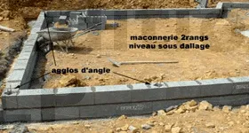 | IMPORTANT : dans cette partie, nous traitons de la maçonnerie jusqu’à la hauteur d’arase avec linteaux uniquement. Pour la pose des poteaux ronds, la maçonnerie ronde, l’étanchéité extérieure et le saut de loup, qui auraient dû également être traités dans ce sujet, nous avons décidé d’en parler plus en détail dans l’article "Les divers" |