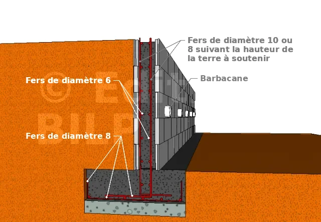 Vous pourrez donc le réaliser en blocs coffrant ou en béton banché. Les barbacanes servent à éliminer l’humidité de la terre retenue, ce qui limitera les poussées.