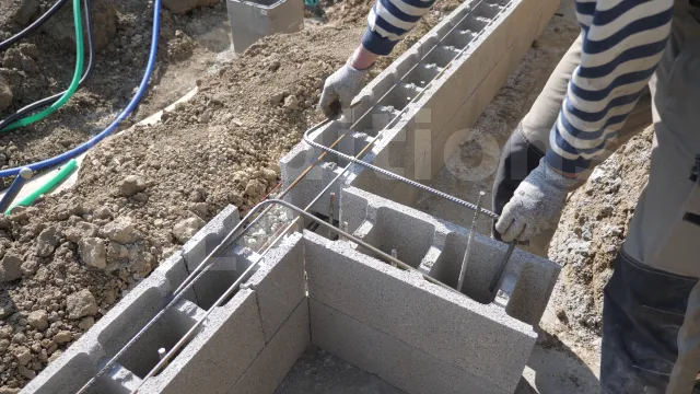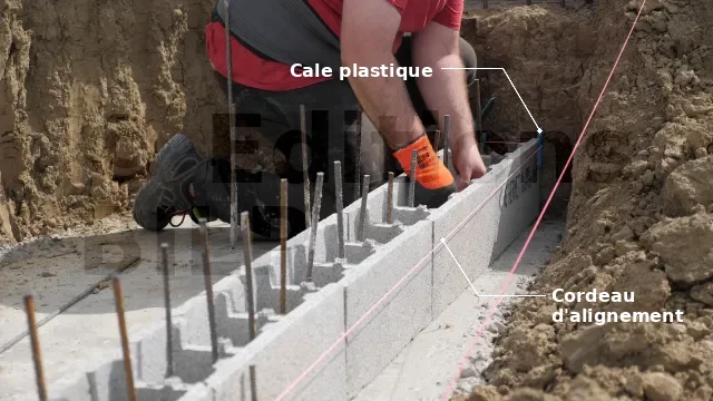 Il sera certainement obligatoire de déplacer quelques fers, à savoir que les deux premiers rangs sont les plus difficiles à placer. Pour assurer la facilité et la régularité du mur, maçonnez les blocs du premier rang avec du mortier, puis utilisez des petites cales plastiques pour les aligner.