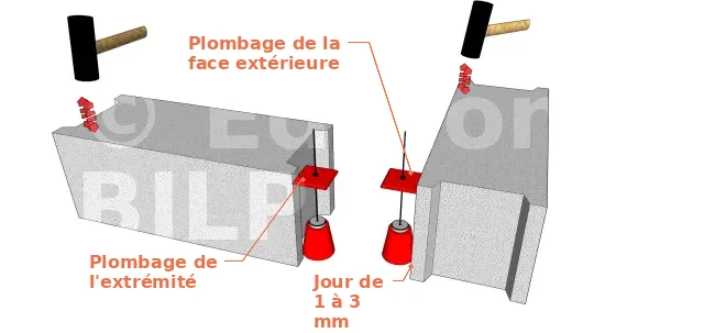 Il est important de plomber l’agglo dans les deux sens, avec un fil à plomb et non pas au niveau à bulle.