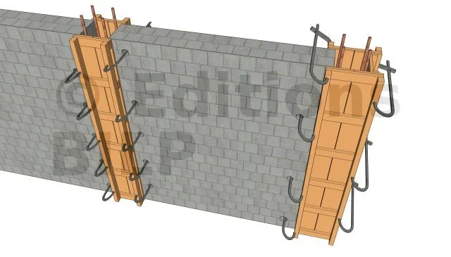 | À savoir ! Le coffrage dans la maçonnerie reste un peu plus facile, dans la mesure où nos points d’appui et de serrage sont le mur maçonné. |
