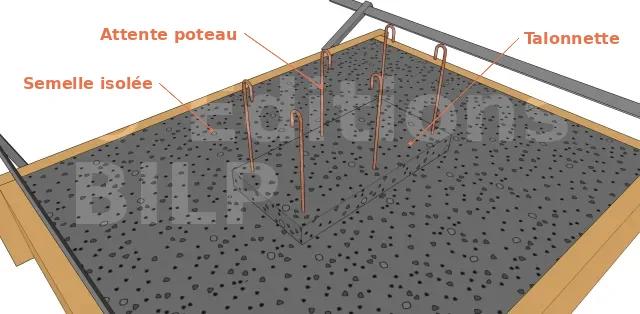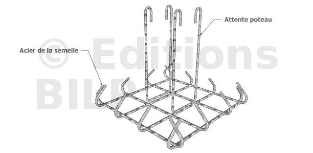 La fondation d’un pilier ou d’un poteau est réalisée en utilisant une semelle isolée qui travaille dans les deux directions. Cette technique permet de tendre la partie inférieure de la fondation dans les deux directions, créant ainsi un quadrillage porteur grâce aux armatures préfabriquées.