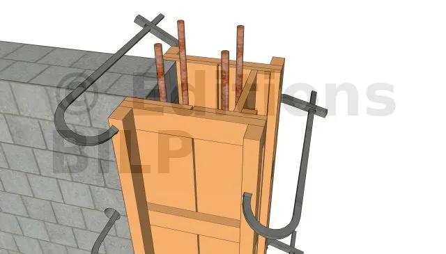 Pour les poteaux isolés, l’implantation doit être précise et d’équerre. Le traçage se fait sur les semelles ou le plancher à l’aide d’une ligne bleue. Une talonnette ou amorce de 4 cm facilite la stabilité. La rigidité des panneaux de coffrage se fait à l’aide de raidisseurs horizontaux et verticaux. La stabilité de l’ensemble se fait avec des contrefiches en bois ou étais tirant poussant. (Voir coffrage dans béton armé).