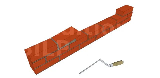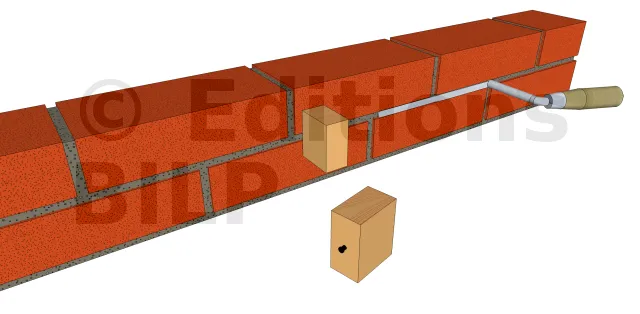 Posez ces blocs intermédiaires un à un en respectant les épaisseurs des joints verticaux. Utilisez un fer à joint adapté à l’épaisseur souhaitée. Avant de placer votre brique, appliquez du mortier contre la face latérale, ce qui vous permettra de ne pas remplir les joints verticaux. Cela évite également de salir les faces visibles.