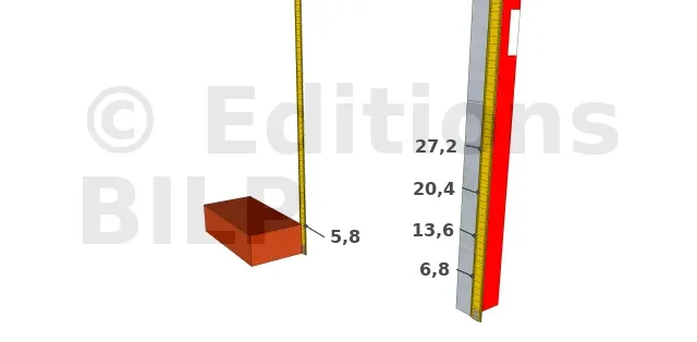 Exemple : épaisseur 5,8 cm + 1 cm de joint soit 6,8 cm.