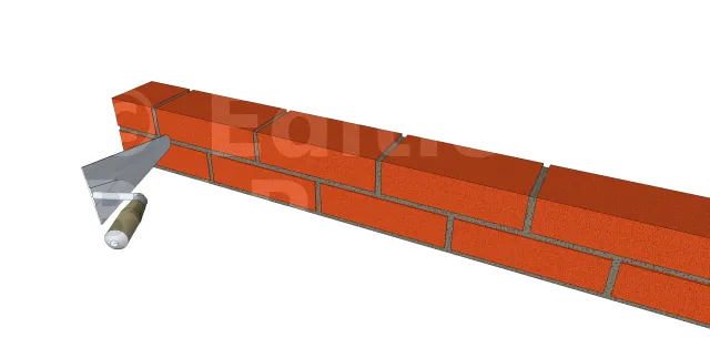 Posez ces blocs intermédiaires un à un en respectant les épaisseurs des joints verticaux. Utilisez un fer à joint adapté à l’épaisseur souhaitée. Avant de placer votre brique, appliquez du mortier contre la face latérale, ce qui vous permettra de ne pas remplir les joints verticaux. Cela évite également de salir les faces visibles.