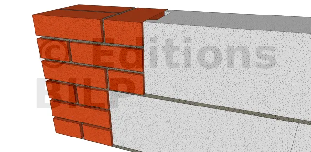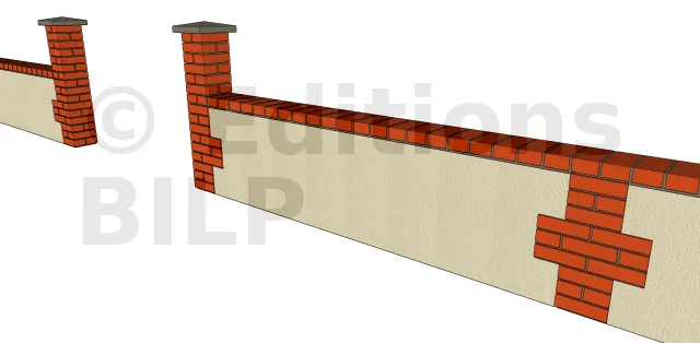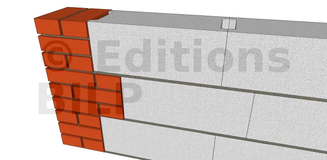 La hauteur de brique étant différente de celle des blocs, nous serons amenés à calepiner les rangs de briques pour arriver à la même hauteur que les parpaings.