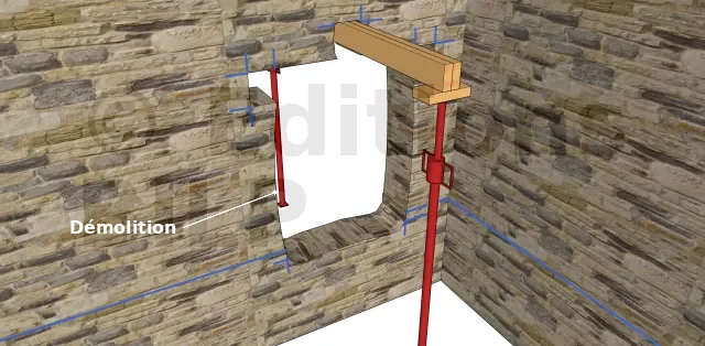 Chaque ouverture doit être étudiée sérieusement car l’étaiement et la section du linteau seront différents pour chacun des cas (mur de pierre, blocs de ciment…).