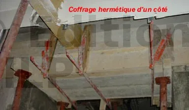 - Pour les murs de refend en agglos de ciment avec un plancher béton dont les poutrelles ne portent pas sur le mur mais ayant un chaînage périphérique. Il n’y aura pas lieu de placer des étais car théoriquement le chaînage servira de linteau pour une ouverture ne dépassant pas 1,20 m. Pour une plus grande ouverture, il faudra caler le plancher de chaque coté du mur et démolir le chaînage pour refaire un linteau à sa place. Plus le mur est lourd plus il faut l’étayer, dans le cas contraire il risque d’y avoir des déformations et que le mur du haut se fissure de partout.