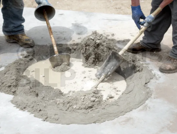 Préparez une aire de gâchage propre. Déposez sur l’aire la quantité de mélange voulue et ajoutez-y la quantité de ciment nécessaire.
