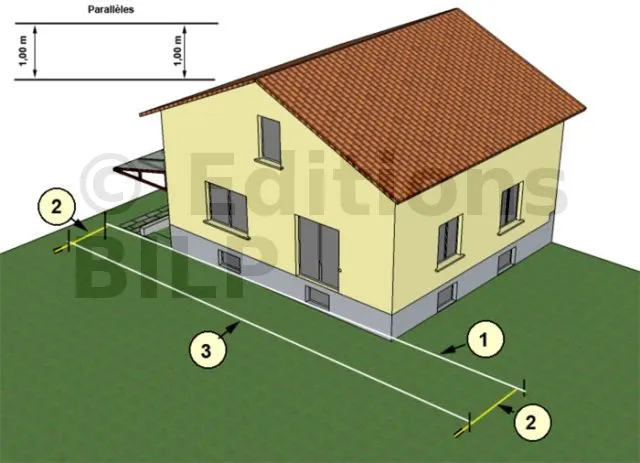 Mesurez à l’aide d’un mètre ou d’un décamètre la distance x entre le début du premier alignement et celui que vous souhaitez créer. Plantez un piquet. Répétez la même opération à la fin du deuxième alignement. Tirez un cordeau entre les deux piquets nouvellement installés. Vous avez ainsi créé une parallèle à la façade.