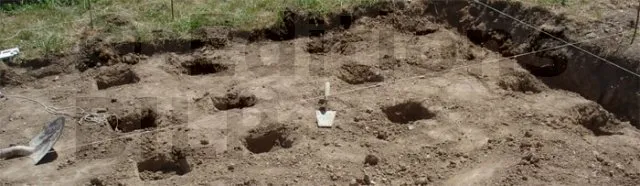 Après le décaissement de la surface de la terrasse, le terrassement des plots s’effectue à une profondeur hors gel. Des trous de 30 x 30 (cm) sont réalisés tous les 1 mètre dans le sens longitudinal des bois (10 x 10) et tous les 50 cm dans le sens transversal de la terrasse.