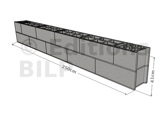 Nombre de parpaings de 20 x 20 x 50 cm : 2,50 X 0,40 = 1,00 m2 soit 10 blocs