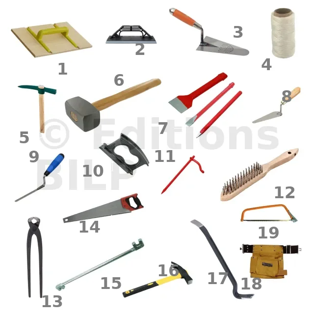 - 7. Ciseau à brique, ciseau de maçon et pointerolle