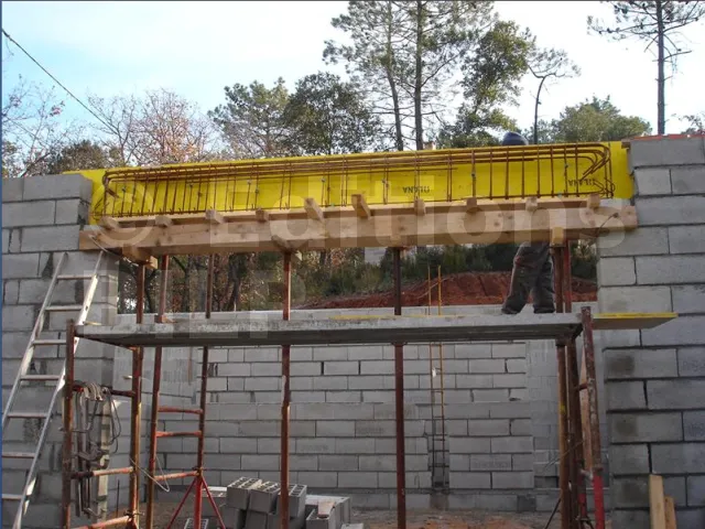 Idem cet autoconstructeur est fier de ces travaux, moi je ne le serais pas...Malfaçon. Ce poteau raidisseur dans le mur (monomur) ne doit pas être coulé en béton entièrement, l’utilité du matériau isolant ne sert plus à rien (sauf isolation par extérieur).