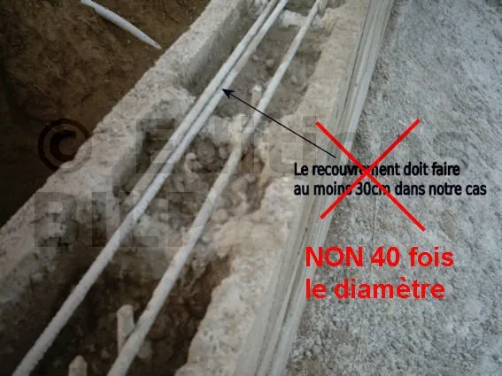 Cet autoconstructeur est fier de ces travaux, moi je ne le serais pas...conseils recueillis sur un forumFond de fouille remblayé, aucune liaison entre ferraillage, manque d’enrobage, au moment du coulage risque d’éboulement de terre dans le béton. Résultat très mauvaises fondations.