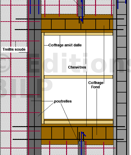 Le chevêtre en béton armé est une poutre qui se situe dans une dalle béton au niveau de la trémie d’escalier ou réservation, Le chevêtre est le renfort de dalle, il maintient la partie se trouvant dans le vide. Il repose sur les poutrelles en général renforcées à cet endroit. Ce chevêtre a pour but de retenir les poutrelles perpendiculaires qui ne reposent pas sur le mur d’appui afin de laisser un vide (trémie) dans la dalle, ce qui permet de pouvoir installer un escalier le ferraillage du chevêtre est en forme dit : bateau
