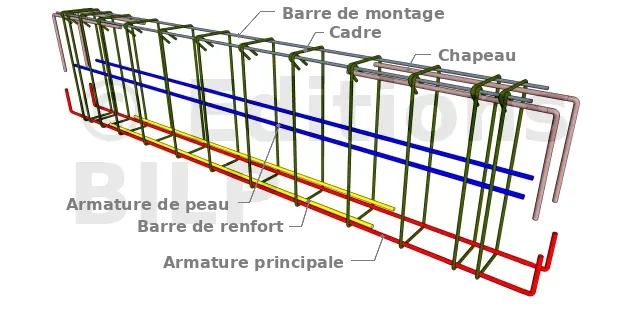 Les poutres ont souvent pour fonction de soutenir les poutrelles. Dans ce cas, des barres de renfort sont positionnées au niveau du plancher inférieur pour renforcer la structure.