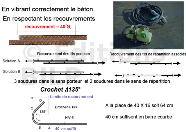 Pour que cette union soit parfaite, trois critères doivent obligatoirement être respectés : l’adhérence, l’enrobage et la position des aciers.