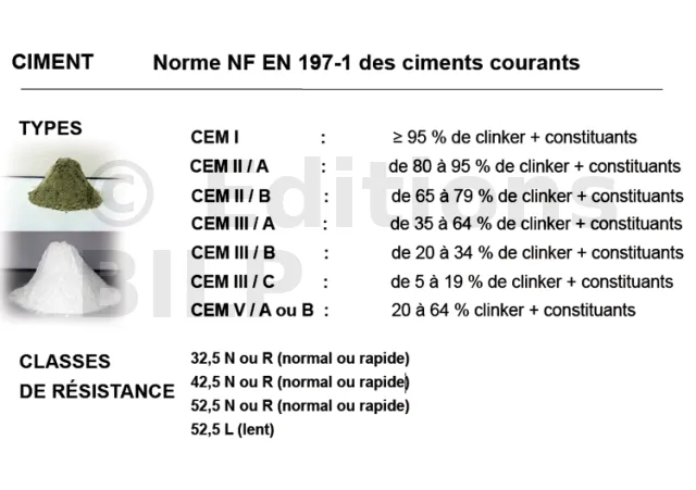 | CEM II / A ou B | Ces ciments sont les plus couramment utilisés. |