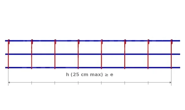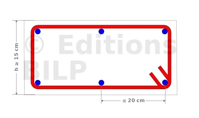 Les chaînages verticaux doivent répondre aux mêmes règles que les chaînages horizontaux en ce qui concerne les sections de béton et les armatures longitudinales et transversales.