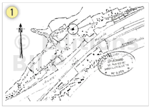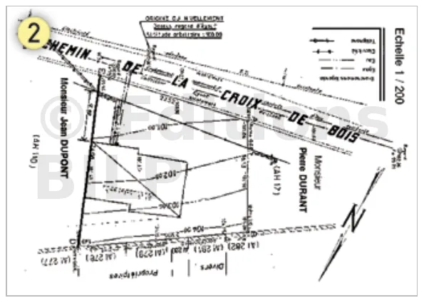 - (1) Plantez des jalons dans la réservation des bornes en limite de votre propriété (ces bornes sont posées par le géomètre).