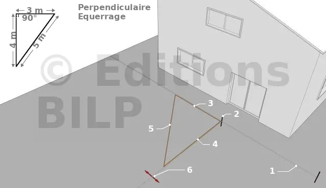 - Tracez 3 mètres à partir du point (2) sur l’alignement (1)