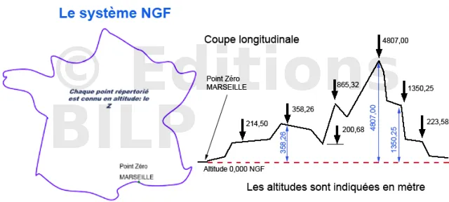 Définition : Elle exprime également une réalité physique, l’eau s’écoule du point d’altitude le plus élevé vers le point d’altitude le plus faible. NGF (niveau général de la France).