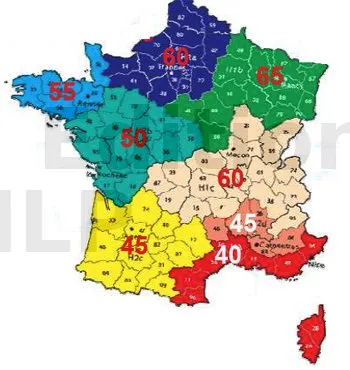 - l’exigence de consommation conventionnelle maximale d’énergie primaire ou coefficient Cepmax = 50 kWh/(m².an) en moyenne ; suivant la région.