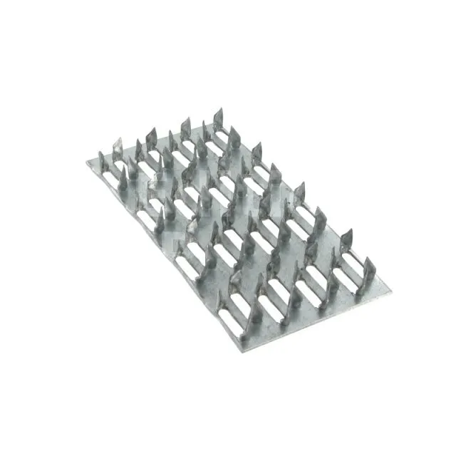 - Caractéristiques et dimensionnement : Ces pièces sont embouties dans des tôles d’acier dont l’épaisseur est comprise entre 0,9 et 2,5 mm. Leur géométrie est obtenue par emboutissage afin de former un réseau de picots capable de transmettre les efforts.