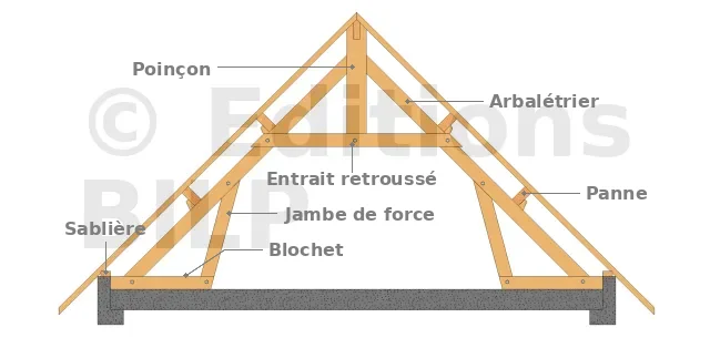 Ces types de fermes sont utilisés pour gagner de la hauteur sous plafond et aménager un comble. Il existe deux cas possibles : l’un avec une dalle en béton et l’autre avec un plancher en bois.